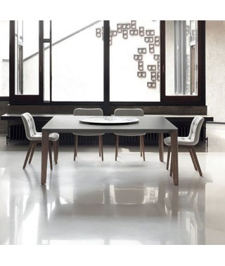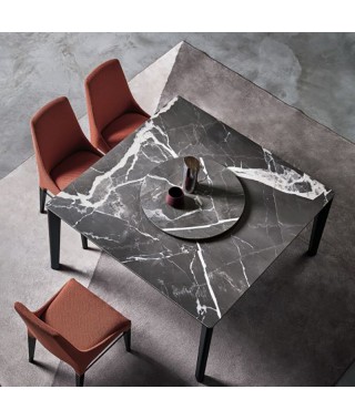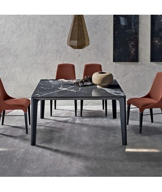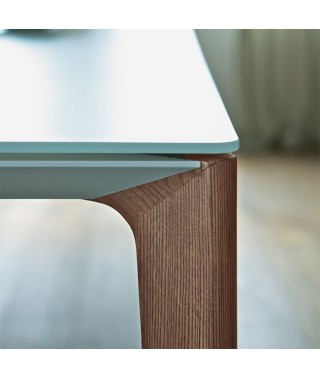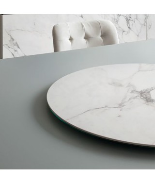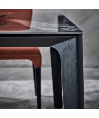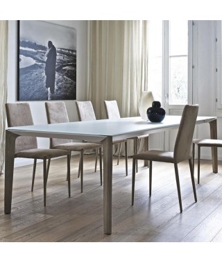 Tavolo fisso e allungabile con struttura in Alluminio laccato in tinta con il piano. Piano in Cristallo, Cristallo Antigraffio o SuperMarmo