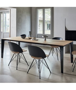 Tavolo allungabile con struttura in Acciaio. piano in Melaminico, Unicolor Antigraffio, Legno impiallacciato, Cristallo, Cristallo Antigraffio, SuperCeramica e SuperMarmo.