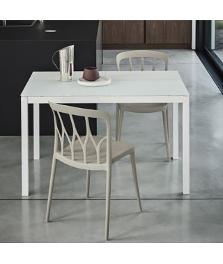 Tavolo allungabile con struttura in Acciaio, piano in Melaminico, Unicolor Antigraffio, Cristallo e Cristallo Antigraffio.