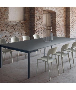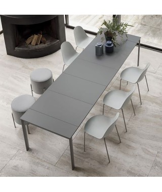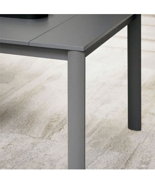 Tavolo consolle con struttura in Acciaio laccato, piano e prolunghe in melaminico.