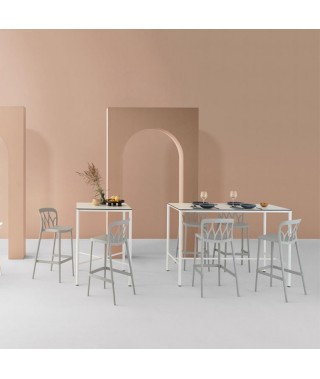 Tavolo alto con struttuta in Acciaio laccato. Piano in Melaminico, Stratificato, Cristallo, Cristallo Antigraffio, SuperCeramica e SuperMarmo.