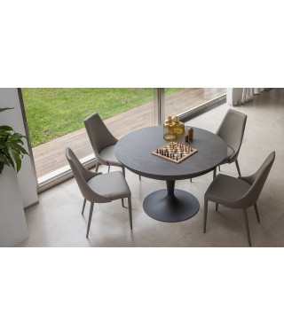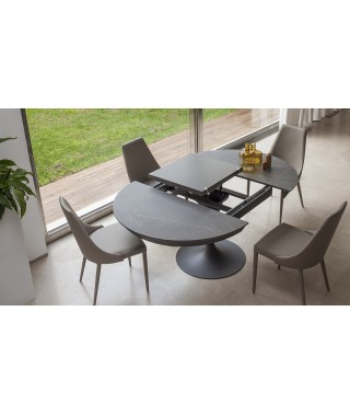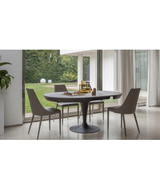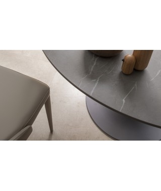 SUN, NELLA SUA FORMA A CALICE, EVOCA UNA COPPA DI CHAMPAGNE: IN EFFETTI QUESTO TAVOLO HA TUTTA L’ARIA DI VOLER FESTEGGIARE IL CONNUBIO VINCENTE TRA RAFFINATEZZA E SINUOSITÀ DI UN DESIGN EVOLUTO E LA RICERCATEZZA DEL MATERIALE DEL PIANO IN CERAMICA PIETRA GREY OPACA. DOMINA AL CENTRO DELLA SALA, ACCOGLIENTE NELLA SUA ROTONDITÀ, DIVENTA ELLITTICO PER OFFRIRSI NELLE SUE PERFORMACES DIMENSIONALI.