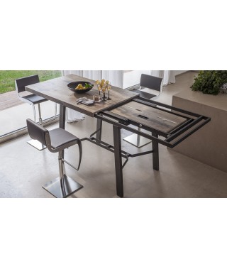 UN TAVOLO DAL CARATTERE BEN DEFINITO, MA VARIABILE NELLA LUNGHEZZA: IL MECCANISMO INTERNO PERMETTE, CON UN FLUIDO SCORRIMENTO, DI ESTRARRE L’ALLUNGA E POSIZIONARLA IN POCHI ISTANTI.