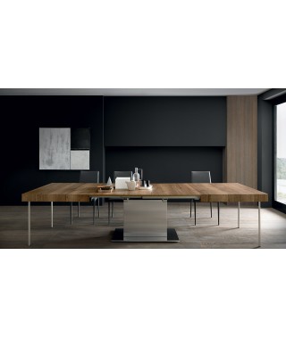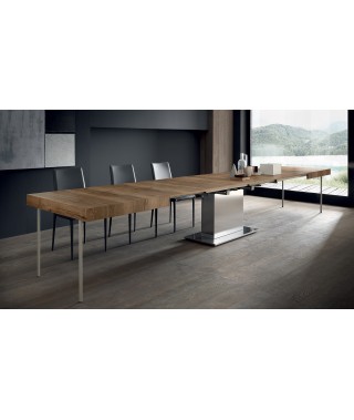 UN TAVOLO ALLUNGABILE CHE SA REGALARE GRANDI, ANZI ENORMI EMOZIONI. NELLA VERSIONE DA SOGGIORNO È PICCOLO E DISCRETO, MA QUANDO SI APRE DIVENTA UN TAVOLO DA PRANZO DI QUASI 5 METRI DI LUNGHEZZA, PER OSPITARE VERAMENTE TUTTI GLI INVITATI CHE VUOI. DA TOWER MAXI PUOI SOLO LASCIARTI PIACEVOLMENTE SORPRENDERE.