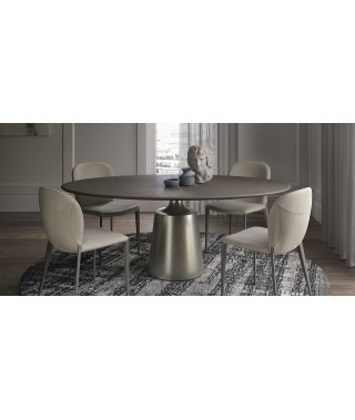 Uno dei modelli più apprezzati tra i tavoli rotoni da pranzo Cattelan Italia è la famiglia Yoda, composta da diverse varianti, tra le quali scegliere per personalizzare la propria sala da pranzo di design. La base è costituita da un tronco di cono centrale, il cui aspetto massiccio viene alleggerito dalle finiture metallizzate e dall'innesto con il piano stretto e rientrante, come a ricordare un lungo collo elegante che sorregge il piano del tavolo.