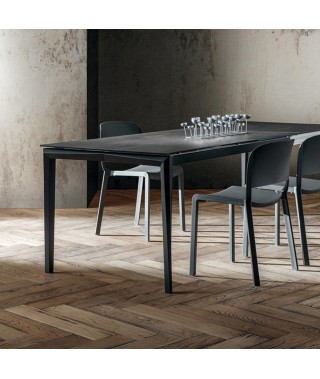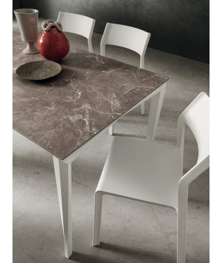 • In “Laminam” (gress porcellanato) da 3mm supportato su vetro (prolunghe in hpl).