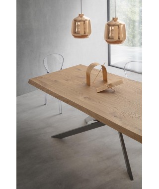 Piano in finitura scortecciata realizzata con pannello da 50mm impiallacciato con morali laterali in legno massiccio.