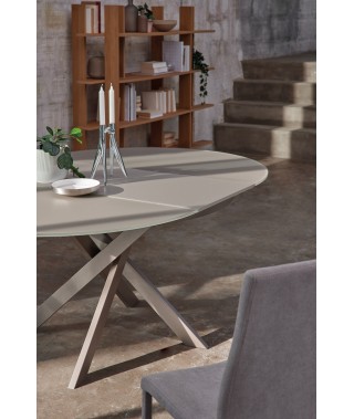 Il piede diventa un atto scultoreo, che sospende il piano con un intreccio polidimensionale ingegnoso. È questa l’affermazione di identità di APOLLO, che anche nelle dimensioni originarie più contenute e nei suoi profili sagomati o tondi promette molto. E mantiene ancora di più. A piano fisso o espandibile, APOLLO è il tavolo che oltrepassa tutte le distinzioni d’ambiente con la sua inconsueta leggerezza.