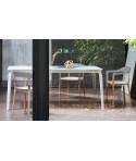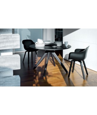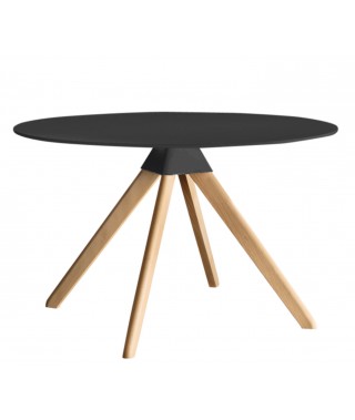 Materiale: struttura in massello di faggio naturale o verniciato, giunto in polipropilene caricato di fibra di vetro. Piano in MDF verniciato o HPL.