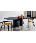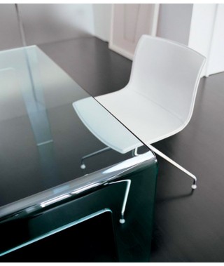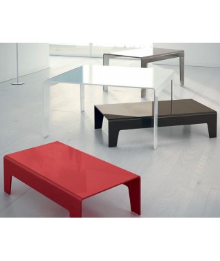 Tavolo in vetro curvo trasparente extrachiaro o laccato mono o bicolore, vari colori.