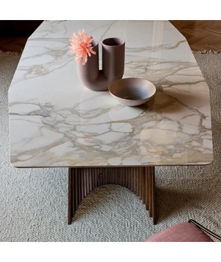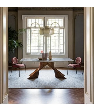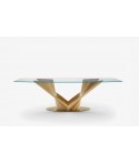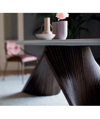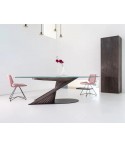 Potente e dinamica allo stesso tempo, il sostegno del piano è una composizione di listelli di legno che creano delle curve sinuose. L’idea alla base della collezione Wave, trova in questo modello un’espressione particolarmente affascinante, richiamandosi al mondo delle api: un simbolo di vitalità e laboriosità. Un tavolo di design perfetto sia per la zona living sia per importanti sale riunioni in contesti business.
