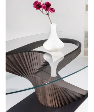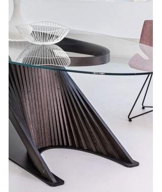 Surf è il frutto di un’avvincente sfida di equilibrio vinta magistralmente da Natisa grazie alla sapienza produttiva dei suoi artigiani. Questo tavolo di design poggia su un’unica gamba che è stata realizzata unendo moltissimi listelli in legno (caratteristica principale della collezione Wave) e fissata a terra grazie a una base in metallo. Il piano poggia su unico pezzo di legno curvo agganciato alla gamba. Un pezzo di design ideale per la zona living di coloro che amano stile, cura del dettaglio e artigianalità.