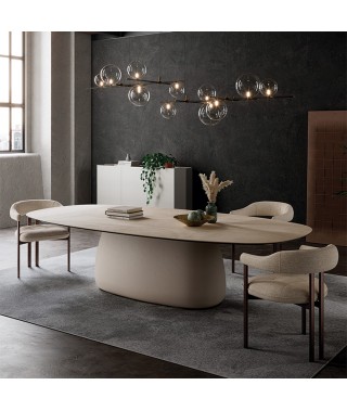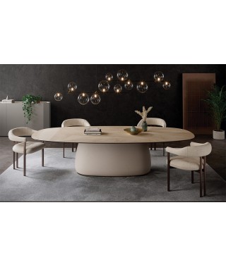 Botero Keramik, un tavolo moderno che fonde la semplicità minimalista con la ricercatezza dei materiali. Il suo basamento centrale, dalle linee morbide e armoniose, si adatta sia agli ambienti classici che a quelli contemporanei. La base, ispirata all’arte di Botero, valorizza i soggetti con volumi abbondanti e sensualità. La lavorazione in argilla esalta le forme e l’artigianalità del tavolo. Il piano in ceramica garantisce un perfetto equilibrio tra estetica e performance.