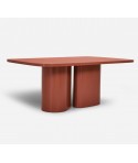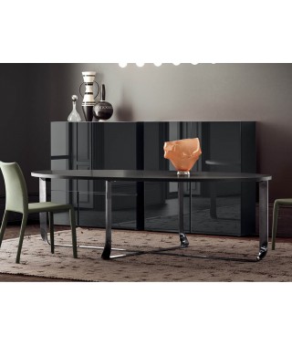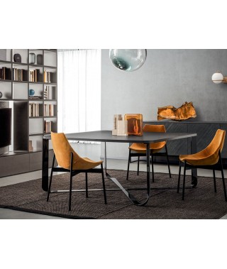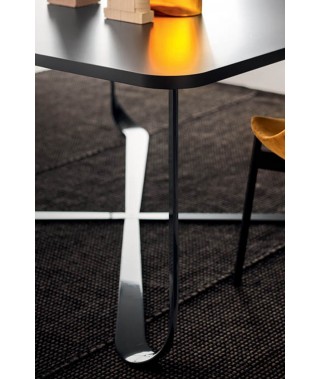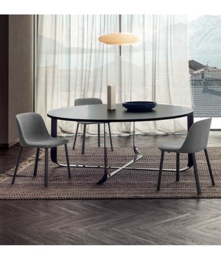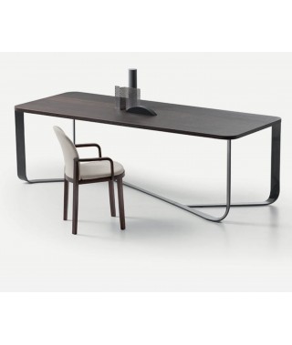 La sperimentazione metallica di Lust incontra l’esperienza di Pianca nella lavorazione del legno, creando una struttura elegante ed organica. Le curve sinuose dell’acciaio, pur mantenendo la consistenza malleabile della materia, convergono in gambe fluide che reggono il piano, come se levitasse. Le diverse finiture dei tavoli rettangolari, tondi ed elittici si adattano a vari stili.
