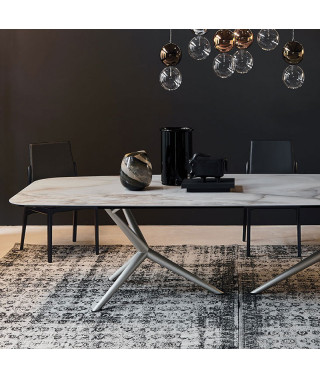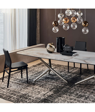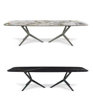 Tavolo con base in acciaio - Piano in ceramica Marmi