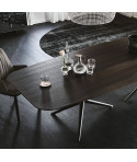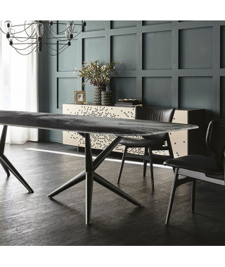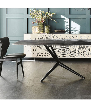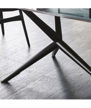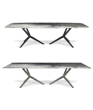 Tavolo con base in acciaio verniciato goffrato titanio (GFM11), bronzo (GFM18), graphite (GFM69) o nero (GFM73).
