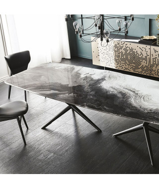 Piedini in cromo nero (06). Piano in cristallo 12mm extrachiaro bisellato con stampa artistica decorativa in due varianti colore (CY01, CY02)