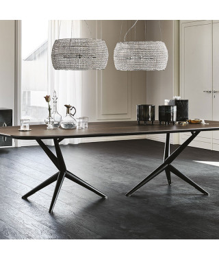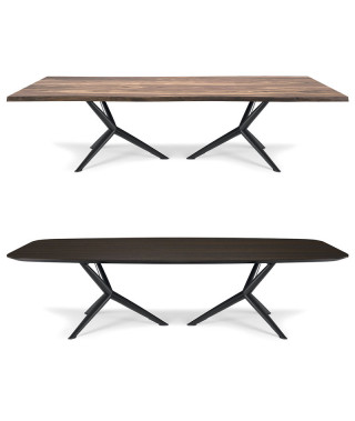 Tavolo con base in acciaio - Piano in legno