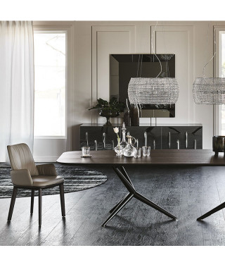 Tavolo con base in acciaio verniciato goffrato titanio (GFM11), bronzo (GFM18), graphite (GFM69) o nero (GFM73).