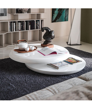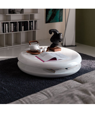 Tavolino con piano superiore girevole in legno laccato bianco lucido (L7).