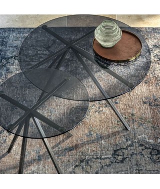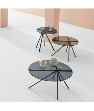 Tavolino con struttura in Acciaio e piano in Cristallo.