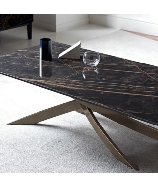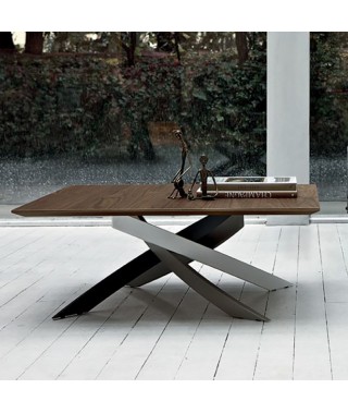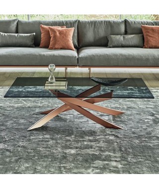 Tavolino con struttura in Acciaio laccato, piano in Legno impiallacciato, Cristallo, Cristallo Antigraffio o SuperMarmo.