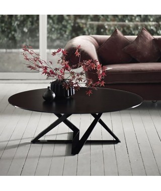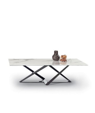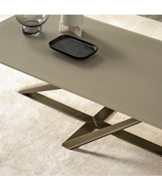 Tavolino con struttura in Acciaio laccato. Piano in Legno impiallacciato, Cristallo trasparente, Cristallo Antigraffio e SuperMarmo.