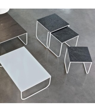 Tavolino con struttura in Acciaio laccato, piano in Legno impiallacciato, Cristallo, Cristallo Antigraffio, SuperCeramica, SuperMarmo.