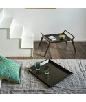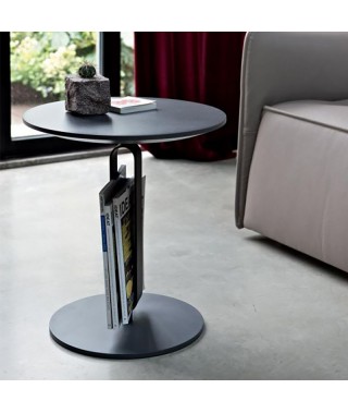 Tavolino con struttura portariviste in Acciaio laccato, piano in Legno impiallacciato o Legno laccato.