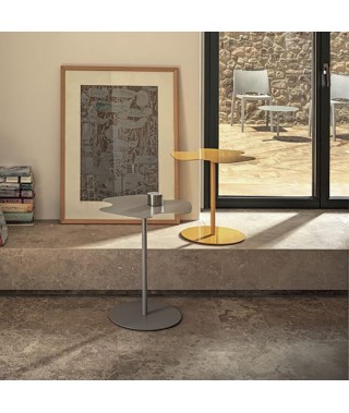 Tavolino con piano sagomato e struttura in Acciaio.