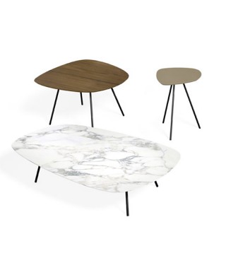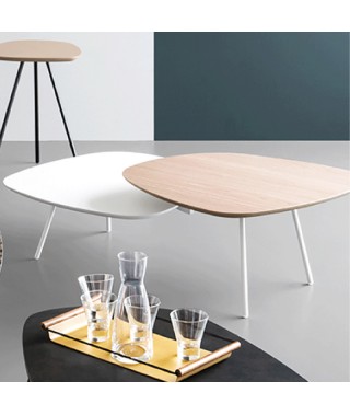 Basamento in metallo e doppio piano d’appoggio, in legno impiallacciato o in finitura laccata; TWEET movimenta l’arredo del living con i suoi due piani irregolari sovrapposti, dai lati curvi di uguale forma e dimensione, che possono essere liberamente abbinati fra loro in molteplici combinazioni di finiture (finitura legno o laccata in diversi colori) per creare un oggetto unico per la vostra casa.