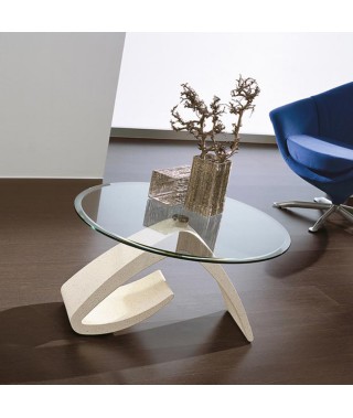 Il piano vetro del modello Cinzia è sostenuto da una placca in acciaio saldato con collanti UV.
