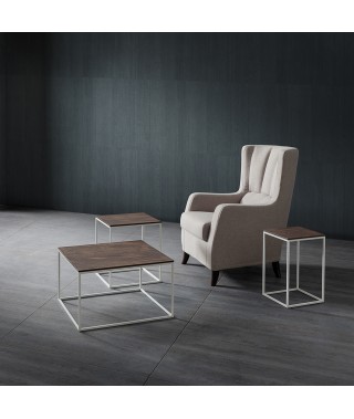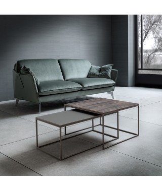 Basamento realizzato in metallo verniciato a polveri epossidiche. Piani realizzati con panneli in truciolare sp. 18 mm., rivestiti in HPL o FENIX e bordati con bordo in ABS.