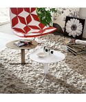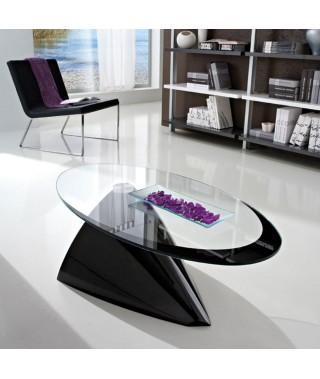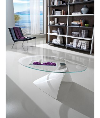Il piano in vetro del modello Pamela è sostenuto da una placca in acciaio saldato con collanti UV.