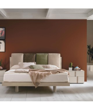 I grandi cuscini, in tre configurazioni diverse, sembrano appoggiati alla testiera, in realtà sono perfettamente integrati. Una soluzione soft ma compatta allo stesso tempo, per stare comodi con stile.
