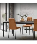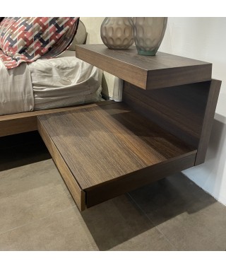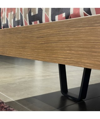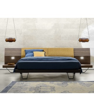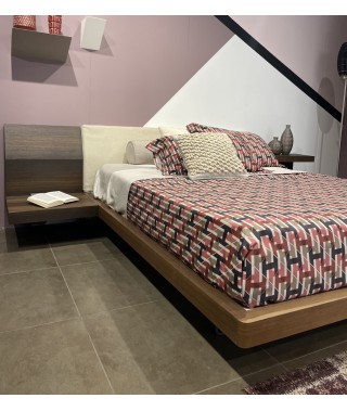 Letto Skin Attrezzato in struttura legno rovere termocotto e testata in tessuto beige.