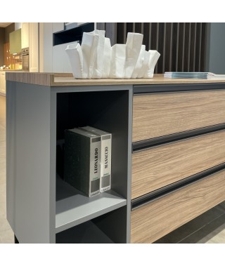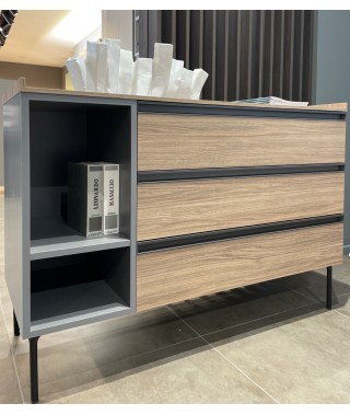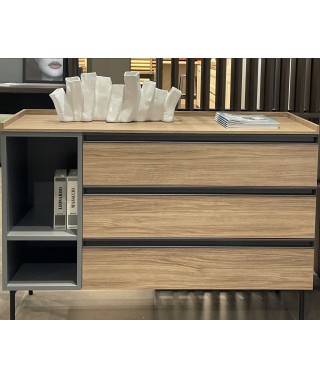 Comò Ego, in finitura Marna Opaco, cassetti e struttura in finitura Matwood Coffee, con vano a giorno.