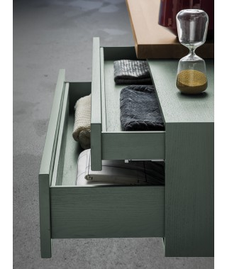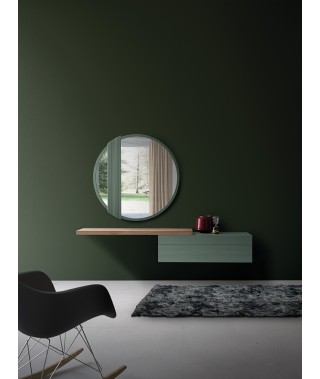 Un volume appeso che leggerezza e si fonde alla perfezione con il Top in legno massello di Rovere.