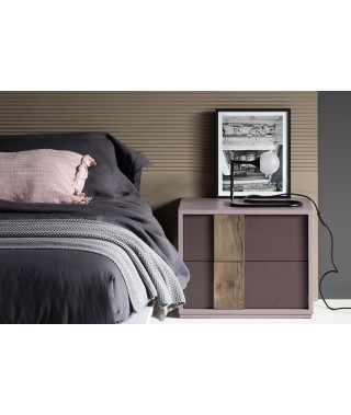 Tinte delicate alternate al color legno naturale per il gruppo di comodini Galaxy. La maniglia materica crea un elegante stacco di colore sui frontali, mettendo letteralmente in rilievo l’essenza lignea del mobile.
