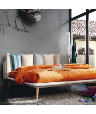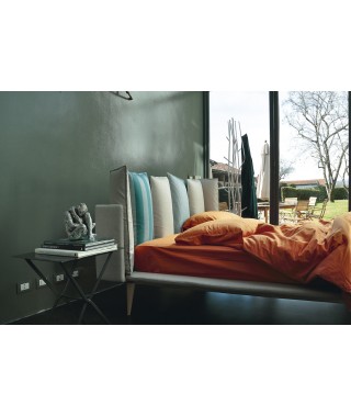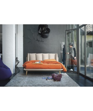 L’originale testata del letto Birdland è composta da sei morbidi cuscini rimovibili. Il letto può essere realizzato in tinta unita nei vari tessuti del campionario, oppure in 7 versioni speciali Inspiration. In queste il giroletto, la struttura della testata e il retro di ogni cuscino sono in tessuto Rimini, mentre il frontale dei cuscini è realizzato in diversi abbinamenti cromatici dei tessuti Riccione, Maratea, Cervia, Brando e Bellaria. Divertiti a spostare i cuscini, a cambiare la loro posizione, a capovolgerli fronte retro, rendendo ogni giorno il tuo Birdland diverso.