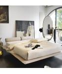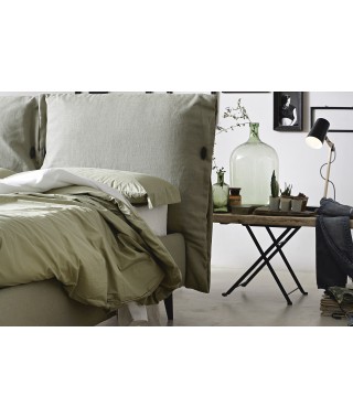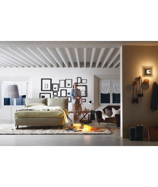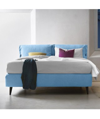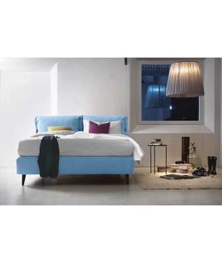 La morbida testata, dalle forme singolari, è caratterizzata dal tessuto accoppiato a una soffice ovatta, che rende le superfici gradevoli al tatto. Può essere rifinita con il classico fiocco o con il nuovo alamaro; entrambi possono essere scelti nello stesso tessuto del letto, oppure in cinque diversi colori in vera pelle